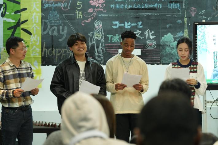 李键老师、常译尹同学和国际学院留学生合作诗朗诵