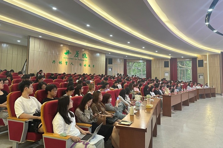 2025年4月16日下午,湘潭市人力资源服务中心主任王萍应邀莅临我院,以“职面未来——外语专业大学生就业择业思考”为题开展就业指导讲座。本次讲座由学院党委副书记何晓东主持,本科生和研究生两百余人积极参与,现场气氛热烈,互动踊跃。