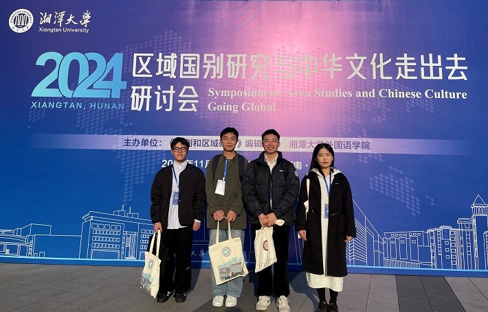 2024年11月29日至12月1日,“区域国别研究与中华文化走出去”学术研讨会在湘潭大学举行。会议由《国别和区域研究》编辑部与湘潭大学外国语学院联合主办。我院李娅婷博士与何唐玺焜、雷诗洁、曹文、童江南等4名硕士研究生参加此次会议。