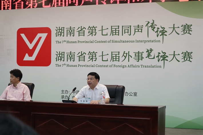 6月16日,由中共湖南省委外事工作委员会办公室主办,我校承办的湖南省第七届英语同声传译大赛与外事笔译大赛如期举行。大赛吸引了来自省内30余所高校及社会翻译界的145名选手参赛。中共湖南省委外事工作委员会一级巡视员邱爱华,我校党委委员、纪委书记杨鑫铨等领导应邀出席开幕式。