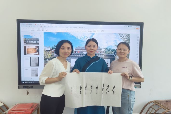 江永女书第四代传承人胡欣老师与我院“湖湘文化英语说”课程教师合影
