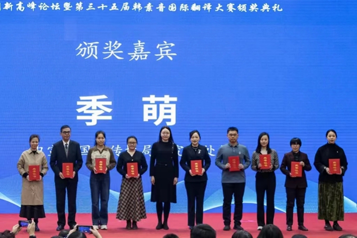 11月25日,新时代对外话语创新高峰论坛暨第三十五届韩素音国际翻译大赛颁奖典礼在中国外文局举行。我院获奖师生应邀参加。