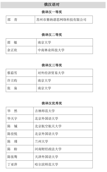 榜单上最亮眼的是我院2020级俄语专业余正欣同学,荣获俄译汉二等奖。本次大赛俄译汉项目全国共评出一等奖1名,二等奖2名,三等奖3名,优秀奖33名。
