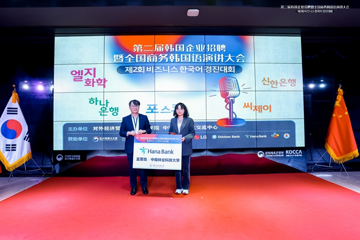 10月30日,由对外经济贸易大学外语学院、中韩经济文化交流中心主办,驻华韩国文化院、国际交流财团、中国韩国商会及韩国在华五家企业赞助协办的第二届韩国企业招聘暨全国商务韩国语演讲大赛颁奖仪式于北京驻华文化院举行。我院朝鲜语系2021级学生孟菁悦荣获韩亚银行组一等奖参加了颁奖仪式。