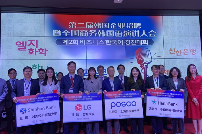 全国商务韩国语演讲大赛于2022年首次举办,旨在推动中韩人文交流、增强校企合作双向赋能、提升商务韩国语专业人才培养质量。本届大赛由初赛和复赛两个部分组成,共有来自全国30余所高校的70余名选手参与角逐,最终分别评选出韩亚银行组、乐金化学组、浦项组、新韩银行组一等奖、二等奖、三等奖各一名。