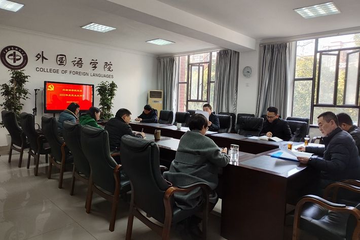 按照中南林组【202214号关于开好2022年度基层党委(党总支)民主生活会的通知精神,227日下午,外国语学院党委在知语楼二楼会议室召开2022年度民主生活会。学校指导组第三组组长、机关一党委书记崔景祥、生命科学学院辅导员兼组织员段酬苍应邀莅临指导,会议由学院党委书记吴成祥主持,学院党委全体成员参加。