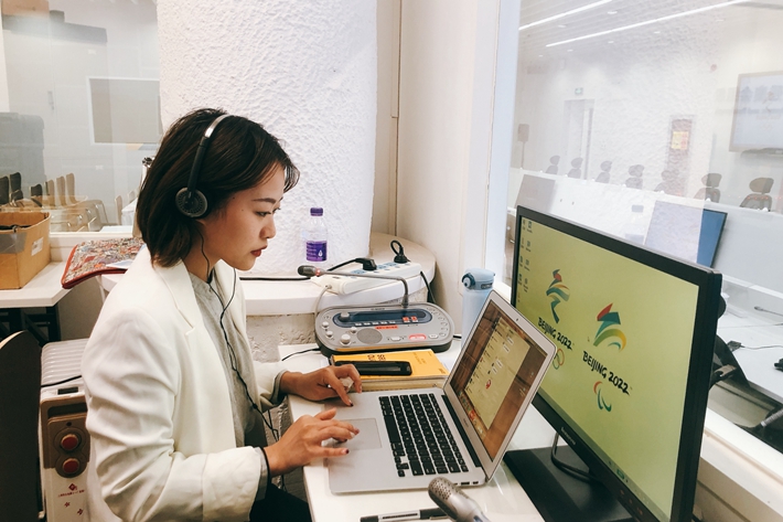 北京冬奥会赛事正酣,奥运健儿不断超越自我,佳绩频出。璀璨赛场内外,来自全球的译员们也在这一国际盛会上纷纷展现自己的魅力与风采。这其中就有我校外国语学院2017级翻译硕士李文瑨的靓丽身影。2020年8月,李文瑨历经层层筛选,从数千名应聘者中脱颖而出,成为湖南省唯一通过校招入选2022年北京冬奥组委会的正式译员。入职后,她承担了业务领域项目审议会、国际奥委会执委会会议、国际奥委会-北京冬奥组委每日协调会等近200场重要活动的口译任务。工作内容涉及北京冬奥组委会各个业务领域,包括媒体、转播、场馆、医疗、赛事服务等。同时,她还承担速滑、短道速滑等比赛项目部分场次赛后发布会同传工作。作为主媒体中心语言服务副经理,李文瑨负责国际译员合同签订及来华事宜,为多语种译员提供高质量语言服务,受到各方好评。