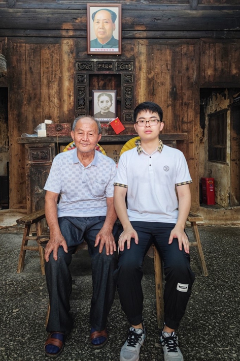 实践团成员与朱忠雄老人合影