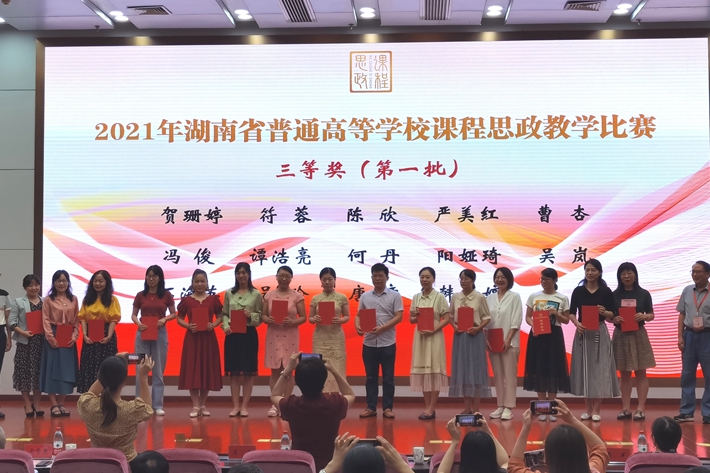 9月28日上午,2021年湖南省普通高校课程思政教学比赛决赛在长沙理工大学圆满落幕,我院大学英语二部阳娅琦、邹雨真、李慧、肖琼、周山团队荣获三等奖。