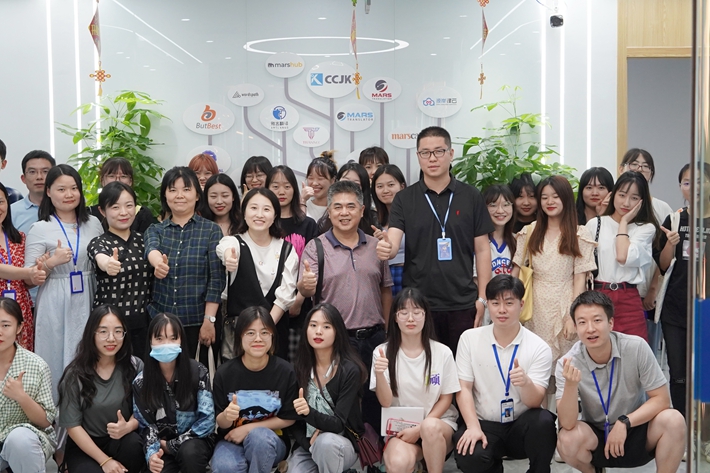 6月22日下午,我院党委书记李鹏飞、朝鲜语系主任李洪兰、副主任周禧玲、樊强老师、廖孜孜老师以及2018级朝鲜语系全体同学一行前往昆仲科技湖南分公司参观调研。昆仲科技彼岸分公司CEO Mike.Peng、火星学院院长Parker.Xiang、行政主任Cici.Lei、校企合作负责人Marc.Yuan、新媒体负责人Vick.Lv出席了座谈会。