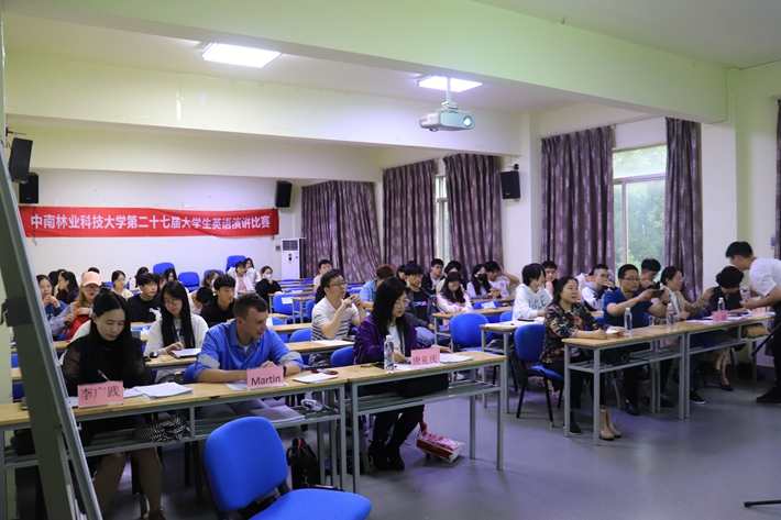 5月29日,由中南林业科技大学教务处主办、外国语学院承办的第二十七届大学生英语演讲比赛在至善楼217教室成功举行,共有来自14个学院的52名选手参加了本次比赛。外国语学院院长张沉香,副院长李端阳,班戈学院副院长侯茂章出席并观摩比赛。评委团由朱敏讲师、王琼讲师、李广践讲师、唐礼庆讲师、外教Martin组成。
