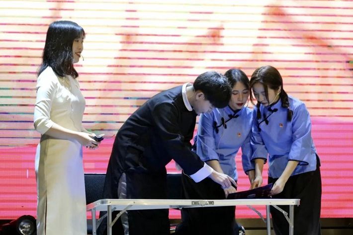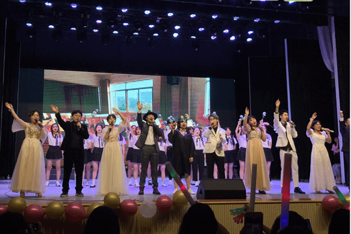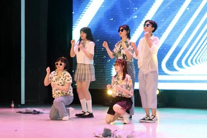 踏着充满活力的鼓点,洋溢着自信的笑容,表演者们与观众互动,节奏感强烈的音乐节拍瞬间点燃全场。师生合唱更是将气氛拉至高潮。