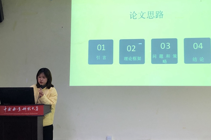 第一位主讲人是姚蓝同学。她结合了自己的实践经历,针对农业文本中专业术语和长句翻译中出现的问题,运用莱斯文本类型翻译理论,进行研究,并给出了针对性的翻译策略和建议。“一带一路”的创立和发展,给中国带来了更多与国际接轨的机会,也带来了更多翻译实践机会。在笔者的实践过程中,发现了农业文本翻译实践中存在专业术语和长句翻译等问题,提出要恰当运用直译的翻译方法、顺译的翻译策略,来提高翻译质量。