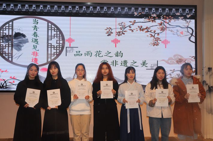 12月27日上午,中南林业科技大学“当青春遇见非遗”项目成果汇演暨表彰大会在湖南雨花非遗馆顺利举行。雨花非遗馆领导、非遗传承人导师、我院副院长李端阳、副院长李志奇、副院长黄宇驰、翻译系、英语系等系部70余名师生,参加了本次活动。大会由雨花非遗馆董事长郭存勇先生致开幕词,五名非遗传承人导师和郭存勇、李端阳担任比赛评委。