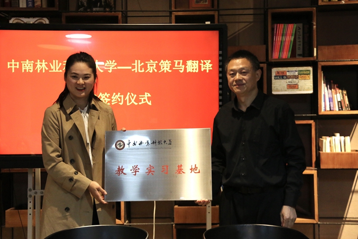 最后,李志奇和倪影正式签约,北京策马翻译公司湖南分公司正式被授予中南林业科技大学教学实习基地。合作双方将以此次携手作为重要契机,推动校企合作迈上新台阶。