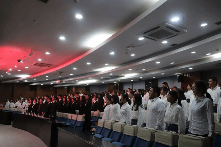 全体起立,奏唱国歌