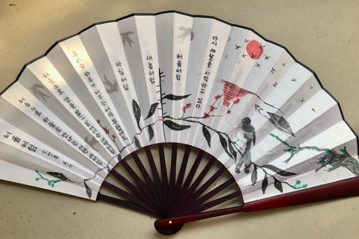 来自全校54名韩国语学习者参与了此次比赛,最后外国语学院朝鲜语系2017级的王一力同学折桂,以优美的书写搭配相得益彰的插画获得大奖。