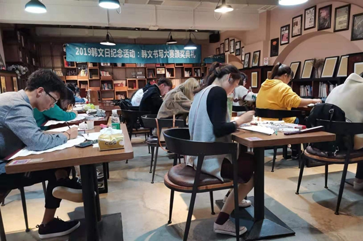 10月18日下午,由驻武汉韩国总领事馆和我校外国语学院共同举办的韩国语书写大赛暨韩国文化节在外国语学院“红楼五语”举行。