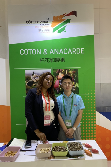 法语系15级学生尹鹏凯在科特迪瓦展馆与外方工作人员合影