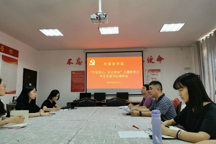 不忘初心,砥砺前行,持续为外院培养高质量人才。9月27日中午,院党委书记李鹏飞邀请7位研究生、本科学生党支部书记、副书记,进行了“以主题教育为抓手、推进学院学生党建工作”的主题调研座谈。院党委副书记张学兵、学工办刘媚及陈露参加座谈。