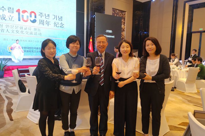 4月9日,由大韩民国驻武汉总领事馆举办的“纪念韩国临时政府成立100周年招待会”在长沙市瑞吉酒店举行,出席此次活动的人员有韩国驻武汉总领馆总领事金永瑾先生、湖南省外事办主任徐正宪先生、韩国著名独立运动家柳子明先生后裔柳展辉先生、长沙市韩人会会长高然才先生、长沙市各大媒体人士等,我院朝鲜语系系师生也应邀参加招待会。
