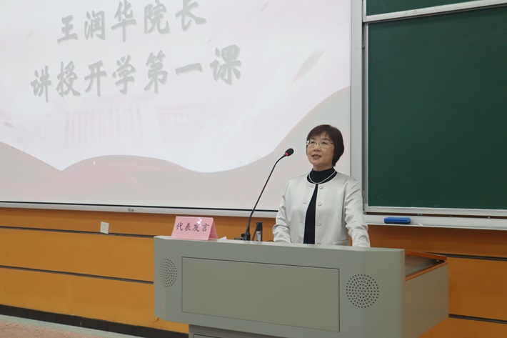 在备受期待的“开学第一课”环节,王润华副院长以学校录取通知书寄送的“青冈种子”为引,作了深刻而富有感染力的报告。她结合外语学科特色,从“语言是工具,更是桥梁”“语言学习需兼具深度与广度”“外语人应胸怀家国、放眼世界”三个维度,系统阐释了外语学习的核心价值与路径方法,鼓励新生不仅要锤炼专业本领,更要拓展国际视野,勇担时代使命,成为联通中外的卓越人才。