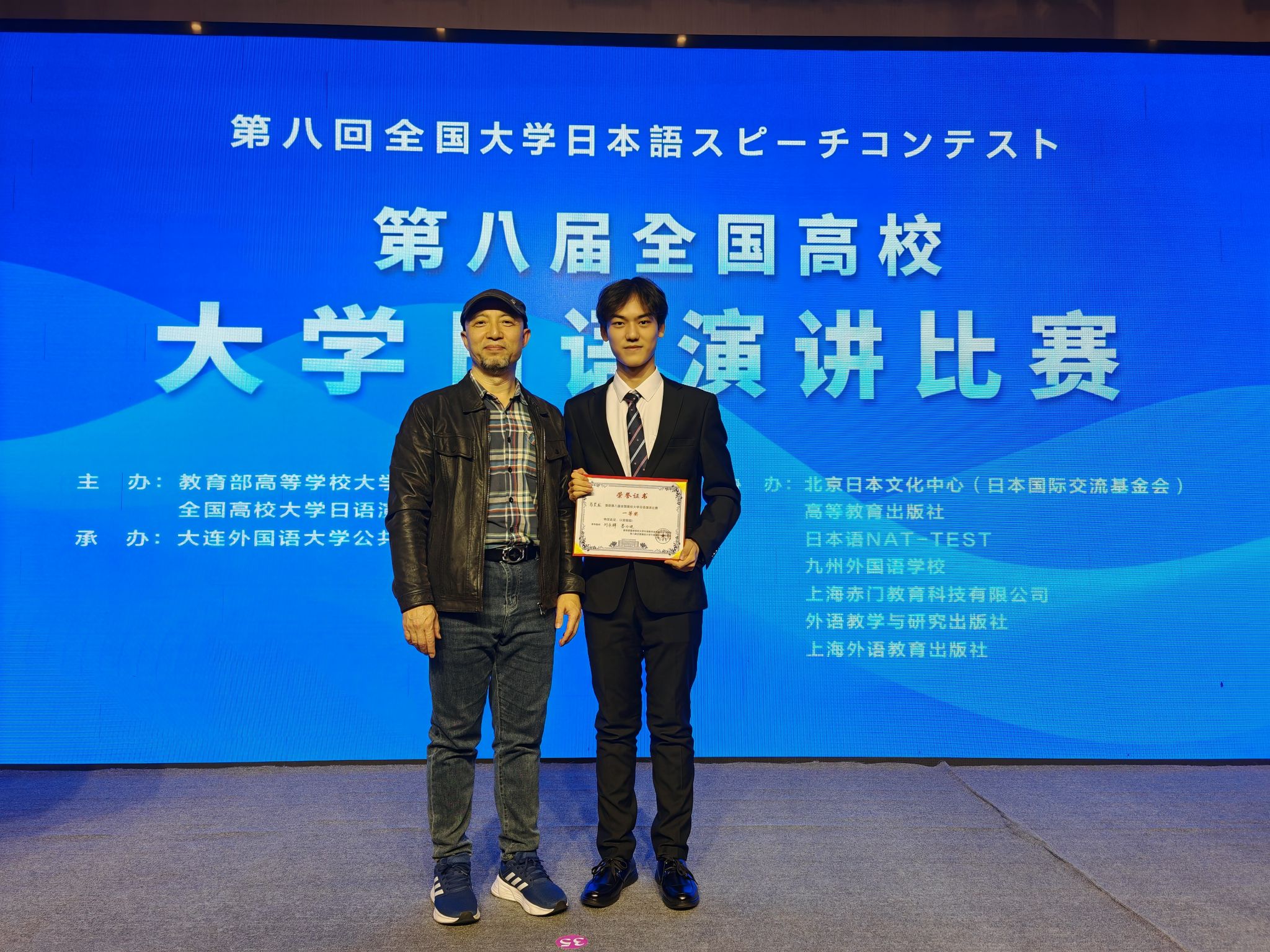 10月18日,第八届全国高校大学日语演讲比赛在大连外国语大学圆满落幕。经过初赛、复赛与决赛的激烈角逐,我校与大连理工大学、中国农业大学、中山大学、大连外国语大学、西安外国语大学等35所高校共同入围决赛。决赛中,我校外国语学院刘永辉老师指导的法学院2023级行政管理专业马昊龙同学凭借出色表现,最终斩获全国总决赛一等奖,为我校赢得了荣誉。