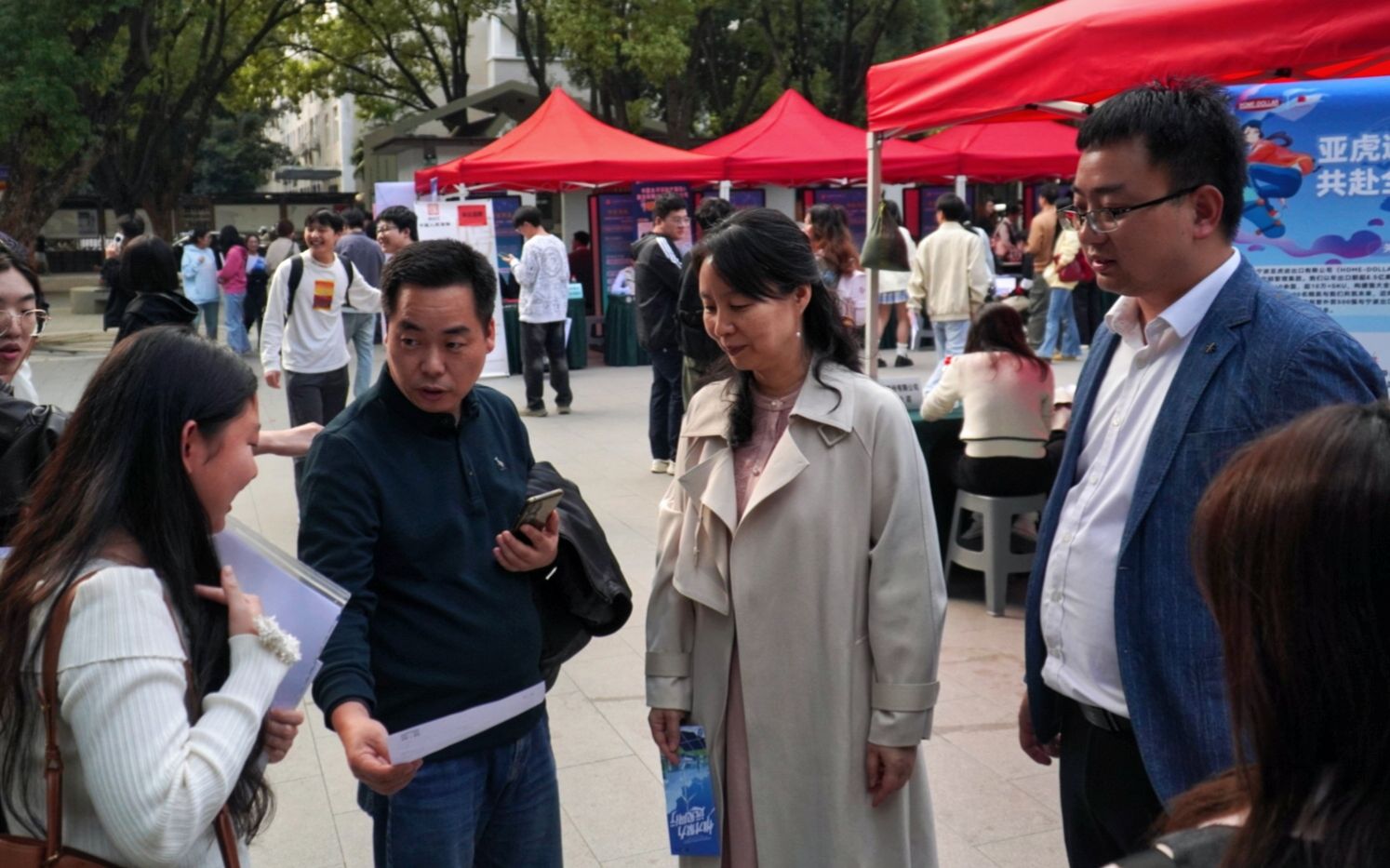学院曾晓峰书记、何敏副院长(主持工作)、何晓东副书记亲临现场指导,走访企业展位并与用人单位代表交流,详细了解企业招聘需求、岗位设置及毕业生面试反馈,为企业精准对接、重点推荐外语类毕业生。曾晓峰书记还与企业代表互加微信,以建立长期校企联络渠道。