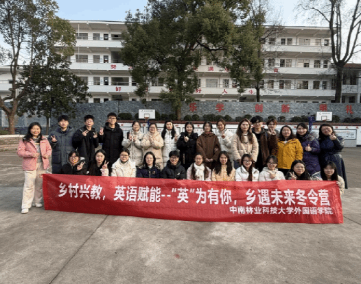 2026年2月2日,为期八天的“‘英’为有你,‘乡’遇未来”乡村英语赋能冬令营在醴陵市王仙中心小学圆满落幕。由外国语学院副院长何敏教授带领廖蓓辉、蹇荣、皮爱红、王慧英4位教师以及“语林同行”多语志愿服务队英语系学生和翻译硕士共21位志愿者,与片区近400名小学生共同度过了一段充实而愉快的英语学习之旅。