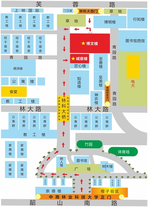 1.考生可从中南林业科技大学芙蓉南路西门和韶山南路东门进、出校园,建议提前1小时到校。