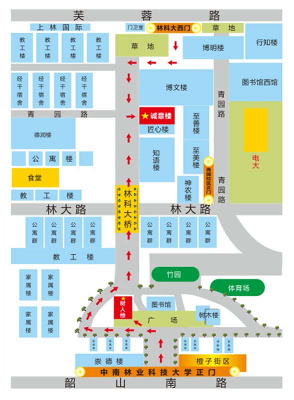 1.考生可从中南林业科技大学芙蓉南路西门和韶山南路东门进、出校园,建议提前1小时到校。