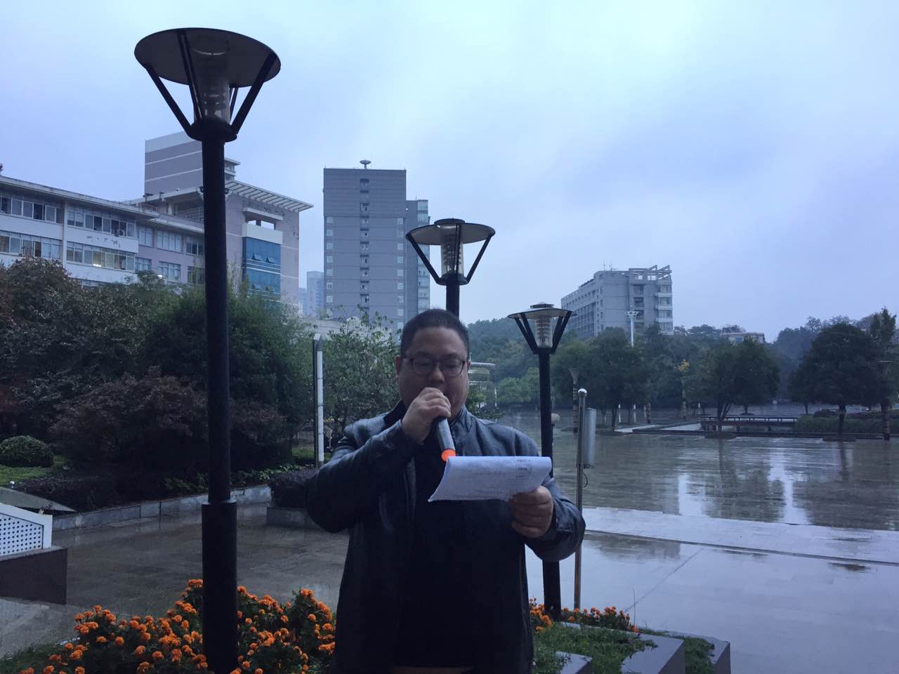 清晨小雨,在外国语学院团委书记刘一波的主持下,开始了升旗仪式,接下来学院党委副书记肖兰平在同学们的注目下声情并茂的进行了“最美外院迎评需要你我他”主题讲话,院学生会主席李文慧铿锵有力的诵读了“最美外院迎评需要你我他”倡议书,在院团委常务副书记李萌的带领下进行了“最美外院迎评需要你我他”的宣誓,学校学工部副部长李健林对外院迎评进行了高度赞扬与鼓励,最后学院党委书记李鹏飞进行了总结讲话,此次活动圆满结束。