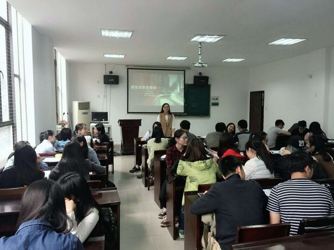 2016年10月11日中午12:00,外国语学院宿舍信息员培训在外语楼102B举行。本次会议由心育员徐钰婷老师主讲,各年级各班宿舍信息员以及心理委员参会。