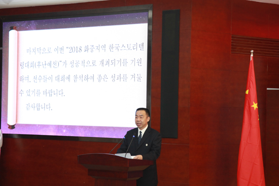 上午9点30分,大赛正式拉开帷幕。出席本次大赛的嘉宾有大韩民国驻武汉总领事馆总领事金永瑾、我校副校长严曙光、国际交流处处长范群、外国语学院院长张沉香、副院长黄宇驰、湖南省韩国人(商)会会长高然才、大韩贸易投资振兴公社长沙代表处馆长金柱澈。参赛者来自湖南师范大学、湖南理工学院、湖南涉外经济学院、中南林业科技大学等湖南省多所高校。