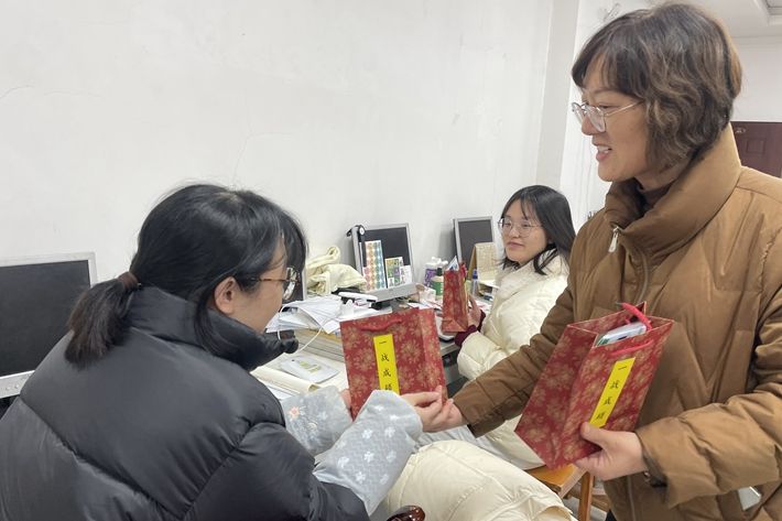 副院长(主持工作)李志奇给学生送暖心礼袋