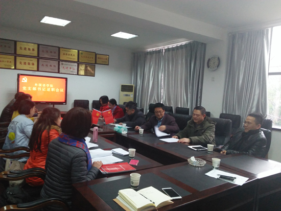 12月28日下午,外国语学院党委在外语楼2楼会议室组织召开了2017年度党支部书记“双述双评”工作会议。全体学院党委成员、8位教工和学生党支部书记参加了会议。