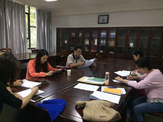 党委书记李鹏飞(左上二)和副院长李志奇(右上一)联系英语及翻译专业教研室党支部