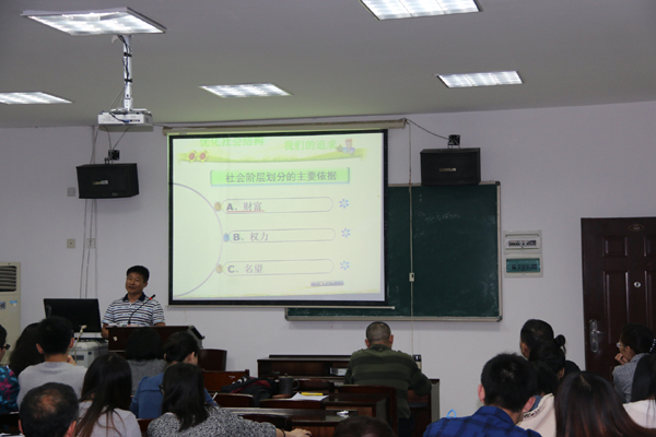 结合“两学一做”,为了帮助我院党员更好的了解当代中国社会的结构失衡及其风险,让大家认识到我们的政府和广大党员应该怎么去做,发现社会弊端,解决社会端倪,更好地服务于社会,李应洪副院长为我院党员上了一堂题为“当代中国社会结构失衡及其风险--由贫富差距导致的社会机构失衡 ”的专题党课。李院长从贫富差距固化为社会结构的变迁、社会结构定型化后对社会的影响、优化社会结构的对策等几方面进行了详细的介绍和深刻的阐述,李院长的党课内容丰富,语言精彩幽默,颇受大家喜爱,让大家收获颇多。