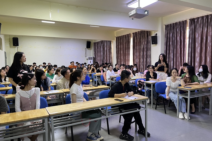 涂婷鼓励各位同学尽早做好心理建设,“有什么子再下什么棋”,确定好自己未来的方向后再根据个人学习状况、兴趣特长,多与父母沟通才能取得更好的申请结果;同样具有留学申请经验的黄文剑也强调了坚定发展方向的重要性,着重分享了俄语对外二级等级考试备考过程和实习实践的重要性;朱威林讲述了自己学习俄语以来心态的变化,从俄语专业求职的角度展现了俄语就业的广阔前景;胡萌萌从工作环境、薪资待遇、竞争压力等方面分享了俄语专业学生从事教育的切实可行性。
