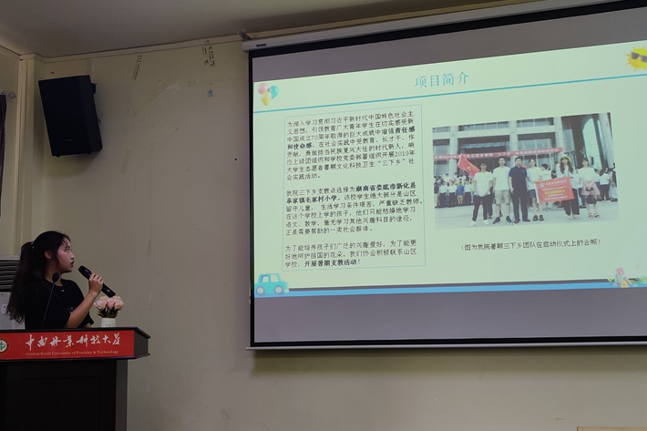 最后,2019年三下乡团队队长黄欣骞发表心得体会。她向大家诠释了高校大学生参加三下乡活动的意义:大学生在社会实践中受教育长才干,同时也给社会带去温暖与希望。她向大家分享了本此三下乡活动的切身体验,提倡广大同学积极响应时代号召,通过实践活动为社会做出自己的贡献。