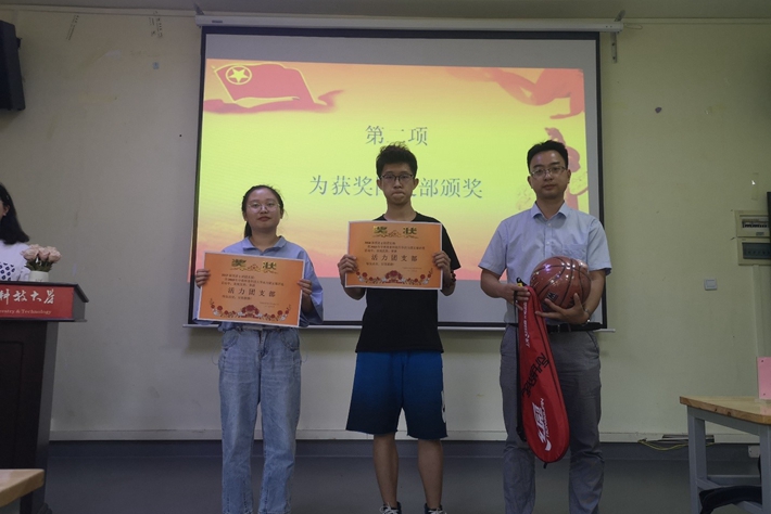 团委书记蒋艳成提到,正值新中国成立70周年之际,我院团学活动取得了可喜的成绩:2017级英语一班和2018级英语二班荣获全校“活力团支部”,为祖国生日送上了一份外语学子的礼物,希望同学们要以他们为榜样,继续努力,再创辉煌!随后,他为获奖班级颁发证书及奖品。