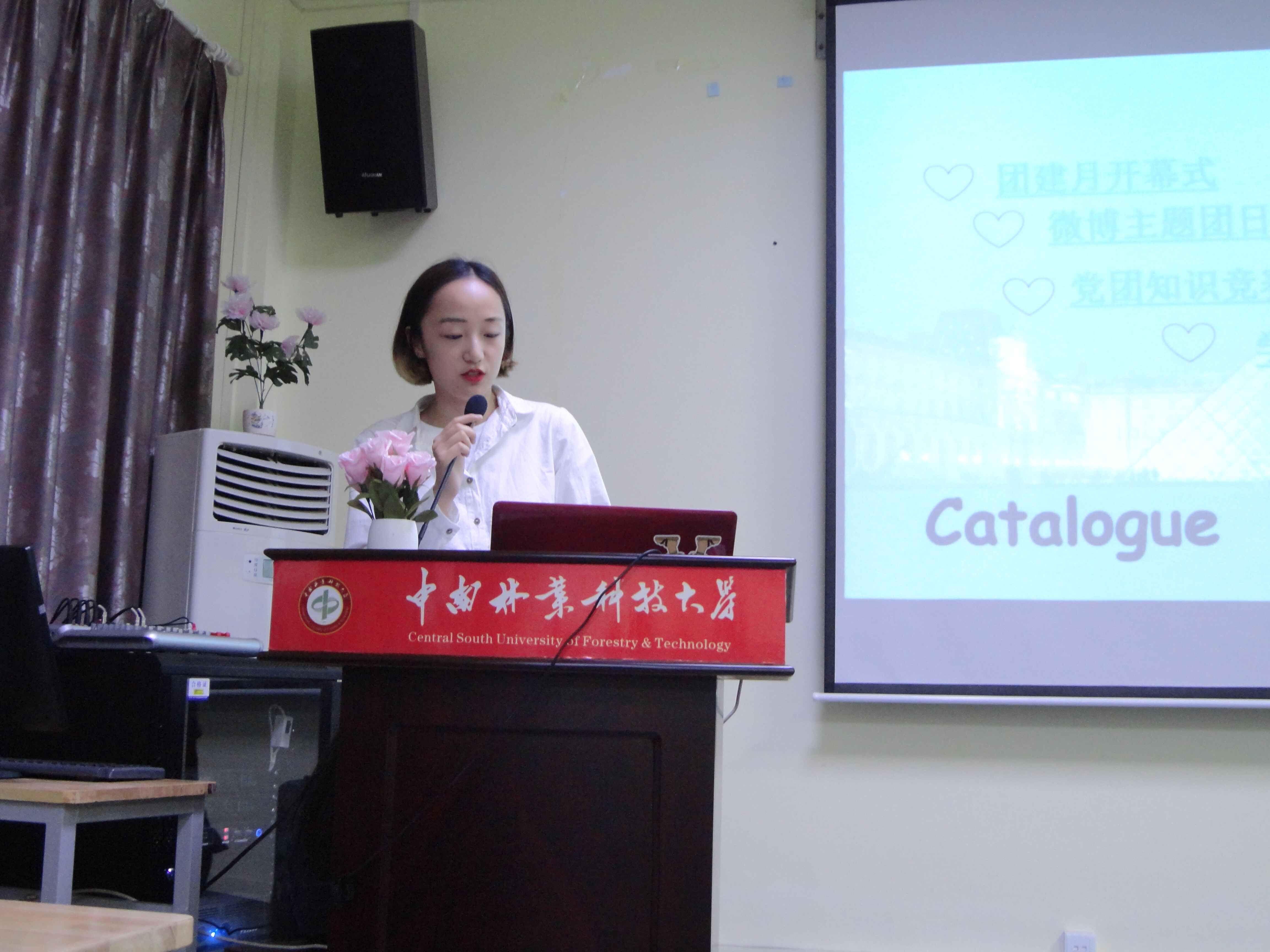 本次活动共分为四项环节。由周芳、丁沭月主持进行了第一项环节——全体起立,奏唱中国共青团团歌,顿时响亮的歌声在整间教室里回荡。随后,进行了第二项环节,即组织部干事潘玮芯宣读中国共青团总则。接下来便是整个活动最重要的环节——各团支部团支书依次进行团建月PPT展示。各位团支书纷纷从组织班级会议、举行班建活动、总结学习成果以及表达对未来的展望等几个方面对本班在团建月中的工作做了细致又全面的展示。团支书们或轻松自如或激情飞扬的表达使得现场的气氛严肃而又不失活泼,并且展示了当代学生干部的风采。最后,团委常务副书记高桐对团建月活动做了总结发言。