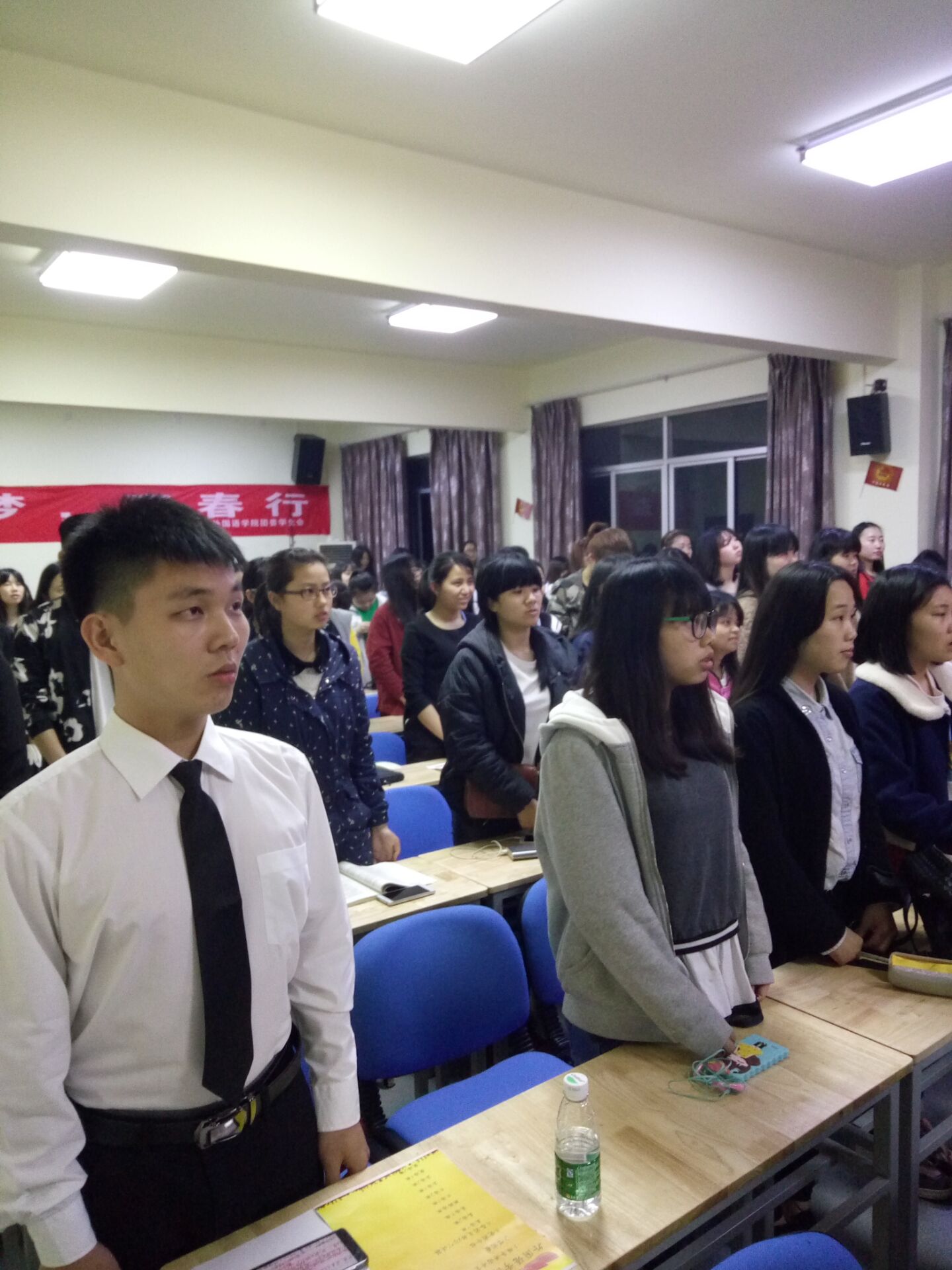 2016年4月8日晚7:00,外国语学院“公益梦·青春行”团建月开幕式在第九教学楼217举行。本次开幕式邀请到的嘉宾有:我院团委书记庞铭老师、2015级辅导员刘一波老师、我院学生会主席李超男及主席团全体成员。