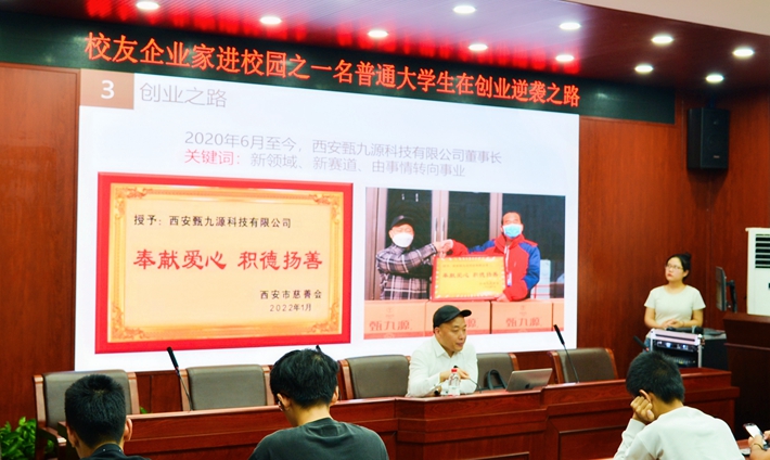 李功徽在讲座中虽轻描淡写地讲述自己的创业之路,但实则背后藏着无数失败的艰辛。从最初创业失败不断还债的艰辛,到转战西安慢慢接手大项目,再到央企任副总主持工作,至2015年成为了长城保险经纪有限公司陕西分公司总经理。但李功徽不满足于此,他认为对于有想法,愿意不断尝试的年轻人而言,在企业里面打工发展总归是受限,于是在2020年6月,他创立了甄九源品牌,成为了甄九源科技有限公司的董事长,走向了新领域,闯进了新赛道。