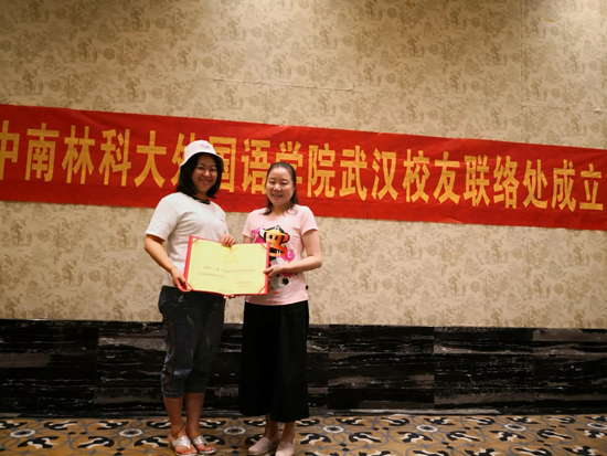 我院院长张沉香为武汉校友联络处副主任滕柳颁发聘书
